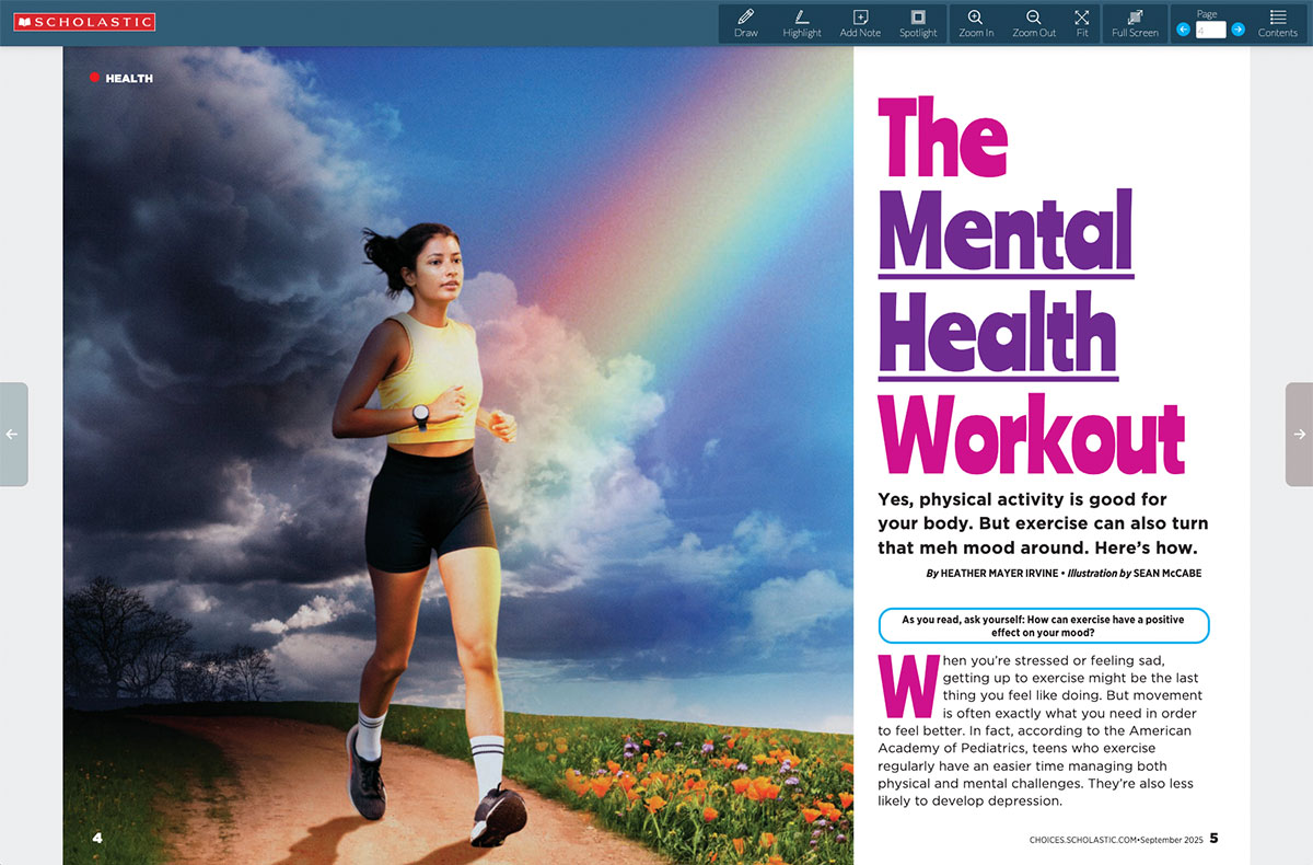Presentation View offers a view of the magazine that looks exactly like the print version. This view is perfect for projecting on your screen in the classroom, while students follow along with their issues.